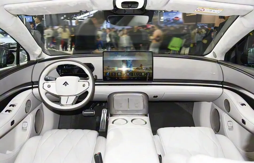 前脸那两道灯带也不是纯装饰。上面那条是智驾状态灯,绿灯亮是正常领航,蓝灯是系统接管中,红灯就是提醒你快接管。轮眉那圈灯会动,开门迎宾、转向辅助、临时靠边都用得上。无框门和隐藏把手看着简单,其实全是为风阻服务的,官方说目标风阻系数压到0.198Cd,比不少超跑还低,这数字不是虚的,跟续航、电耗、高速稳定性都挂钩。