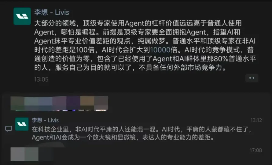 也正是基于对AI的理解,李想也成了汽车圈“最拥护”AI发展的CEO。近日,李想还在朋友圈明确感慨,学会使用Agent能放大顶级专家和普通人之间的差距。
