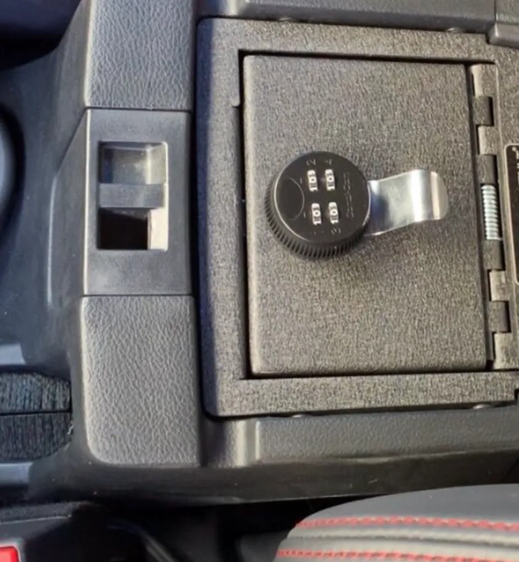 在中控扶手上内置有保险箱,可以存放贵重物品或防护设备。