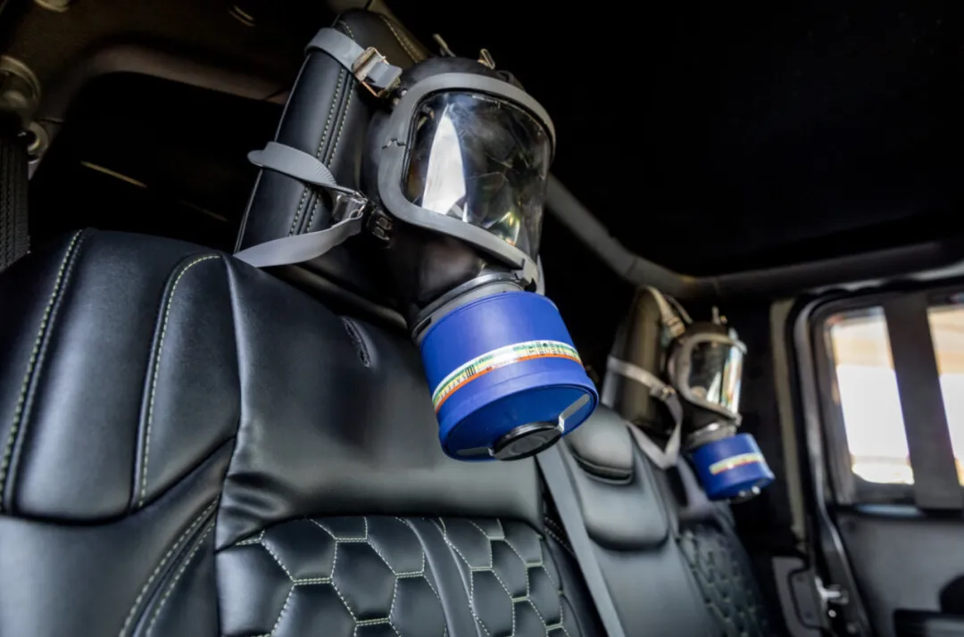 除此之外,车上还配有防毒面具,以及防弹背心和头盔。