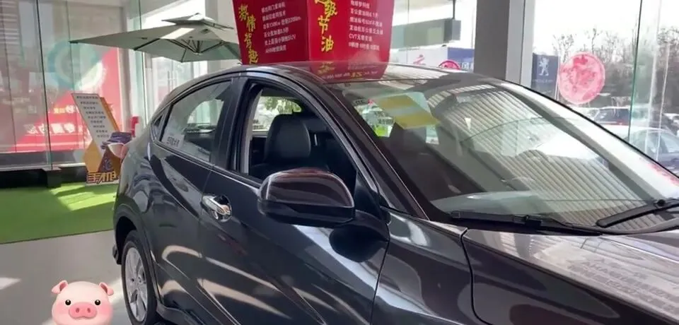 “展示本田UR-V车型外观,介绍降价信息,省油耐用,油耗在6个左右,优惠后最低9万多。”