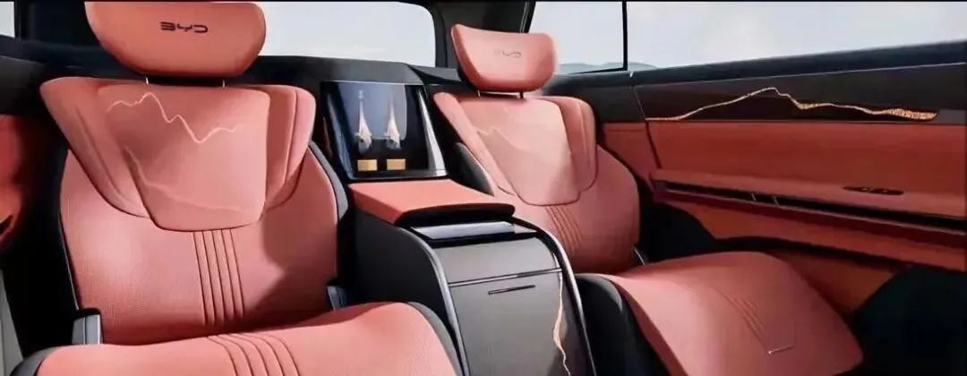 车身侧面,线条舒展平直,近5.3米的车长赋予了它十足的气场。悬浮式车顶、隐藏式门把手与大尺寸密辐式轮毂的搭配,既时尚又动感。车身长宽高提供5263(5302)/1999/1790(1800)mm两种规格,轴距达到3130mm,这一数据超越了理想L9、问界M9等同级车型,为车内空间奠定了坚实基础。车尾部分,立体贯穿式尾灯设计搭配可点亮的“BYD”字母标识与镀铬装饰条,简洁厚重,与前脸设计相呼应,尽显大型豪华SUV的气质。