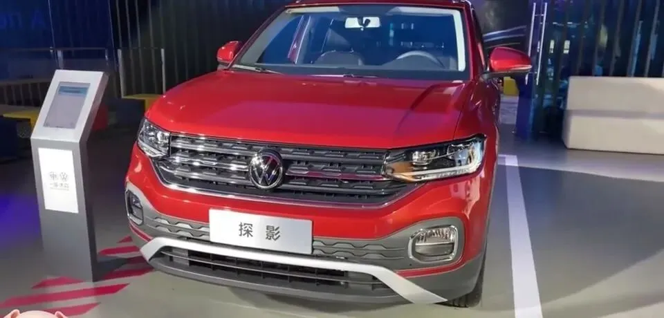 “介绍大众探影车型,红色车身,外观小巧精致。”