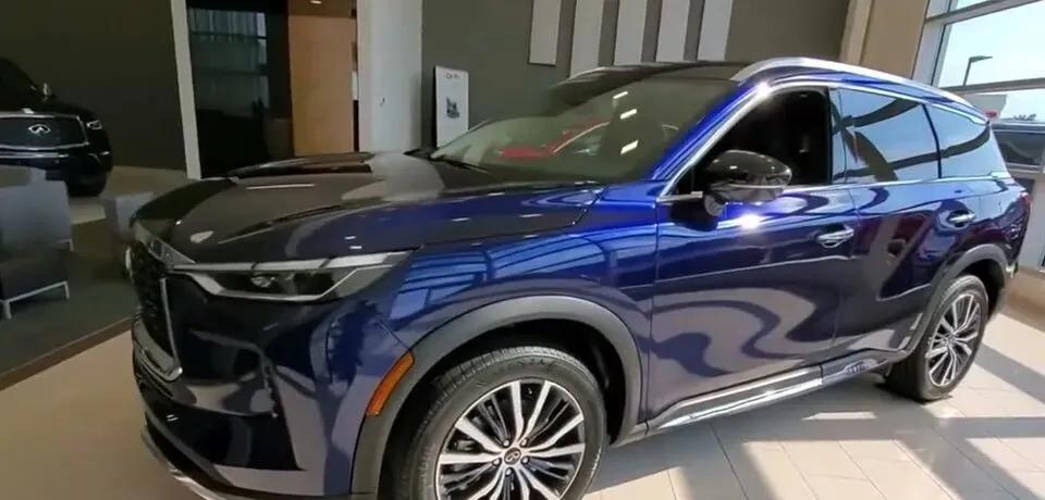 蓝色日产SUV车头展示,日系高端豪华SUV
