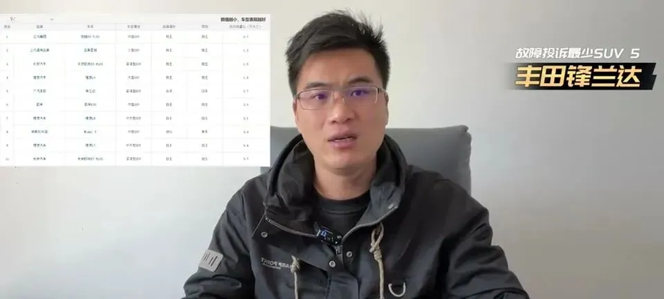 “丰田锋兰达,投诉销量比万分之2.7,这个成绩非常优秀,上半年总销量卖出6.8万台。”