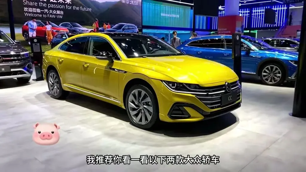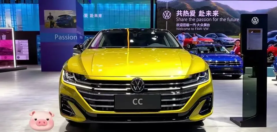 大众CC轿车外观展示,黄色车身设计时尚。
