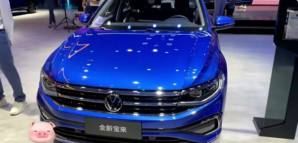 “展示大众宝来轿车外观,蓝色车身。”