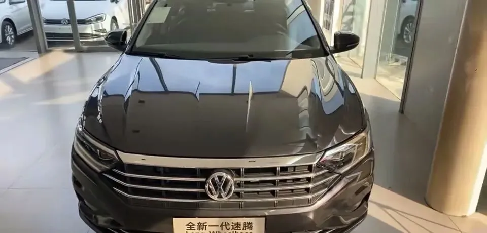 “展示大众速腾轿车外观,灰色车身。”