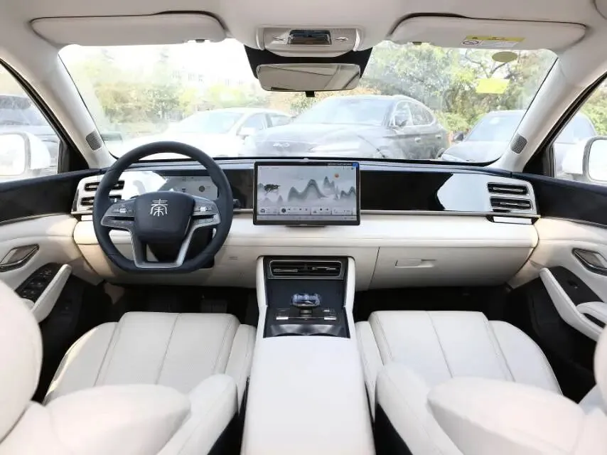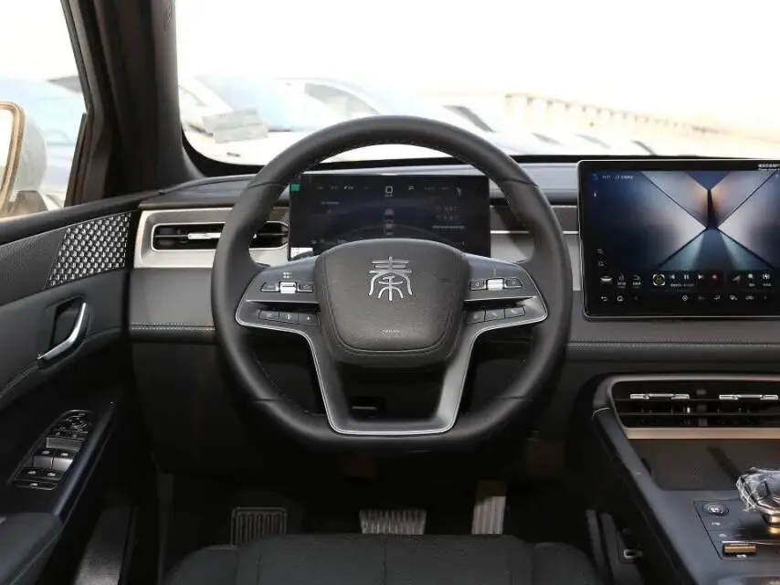 车身尺寸比秦PLUS大一圈,长宽高达到4830mm✕1900mm✕1495mm,轴距2790mm,已经摸到B级车的门槛。油箱容积65L,整备质量根据不同版本在1660-1775kg之间。动力系统同样搭载第五代DM技术(1.5L发动机+磷酸铁锂刀片电池),发动机最高热效率达到46.06%,NEDC百公里综合油耗低至2.6-2.9L,综合续航里程可达2100公里。电动机总功率最高可达160kW,总扭矩260N·m,官方0-100km/h加速时间为7.5-7.9秒。