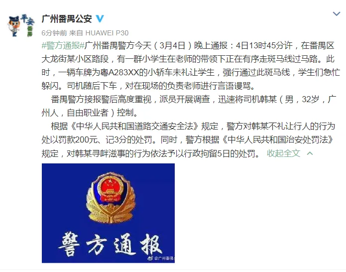 小朋友排队过马路,轿车竟直冲斑马线……行拘!