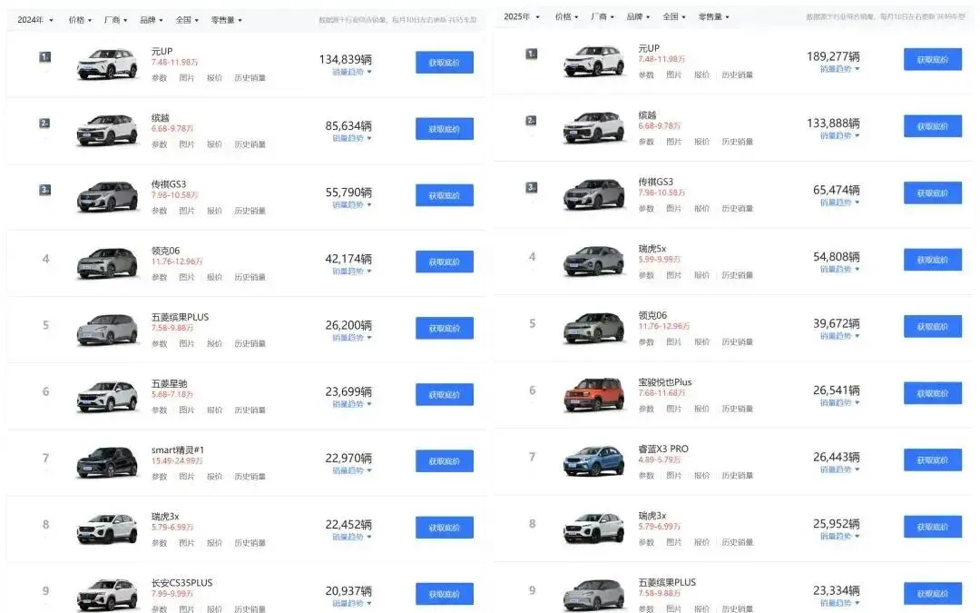 市场小?对,2024年前十总销量才45万,2025年才60万——