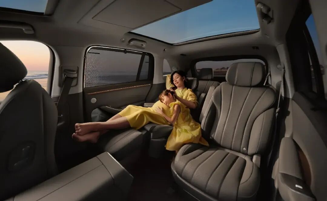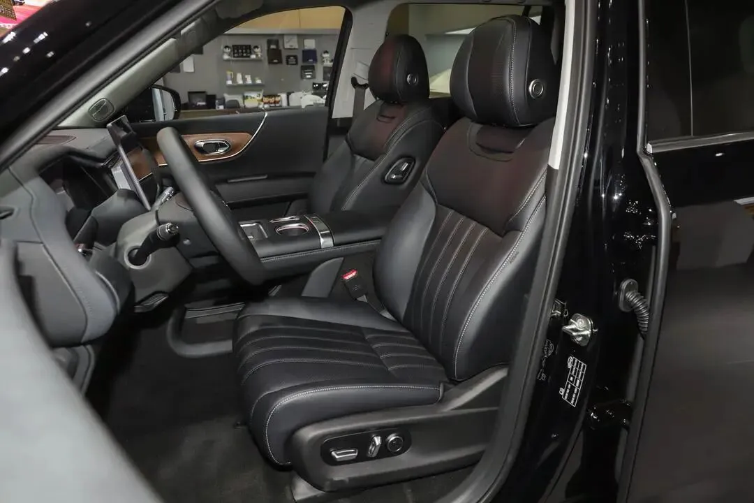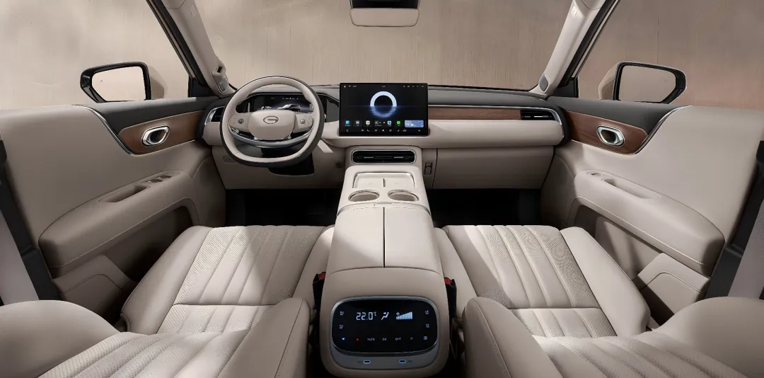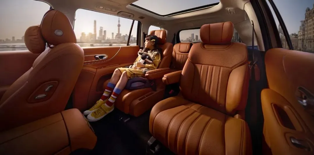 内饰的配置堆得很满,16.1英寸3K中控屏+10.25英寸副驾屏,再加上液晶仪表,三块屏的组合把科技感拉满。5座和6座版本任选,座椅加热、通风、按摩全标配,后排还有娱乐屏和冷暖箱,第二排右侧的零重力座椅,坐上去就能明白什么叫“老板待遇”。