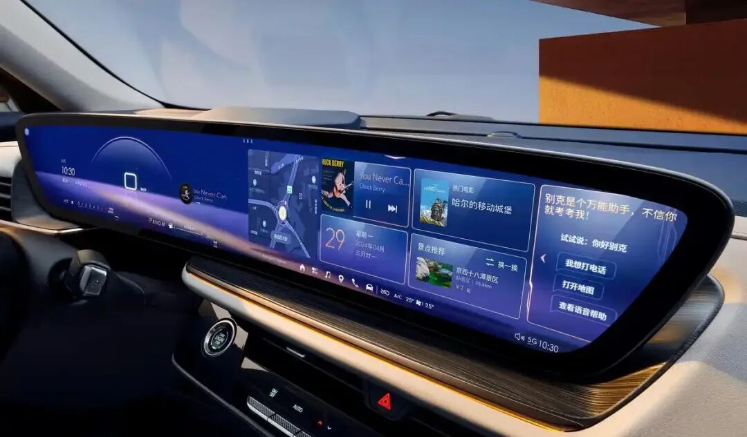 内饰方面,别克昂科威 PLUS 整体采用了环抱式座舱设计,中控台大面积采用软质材质包裹,搭配缝线工艺与镀铬饰条点缀,质感拉满。30 英寸一体式 6K 超清双联屏,内置别克 eConnect 智能车机系统,支持无线 CarPlay/HiCar 与语音控制,操作流畅不卡顿,标配 L2 级智能驾驶辅助、倒车影像、定速巡航、前排座椅加热,家用高频配置全覆盖,唯一的短板是中低配车型座椅填充物偏硬,长途乘坐腰部支撑略有不足。