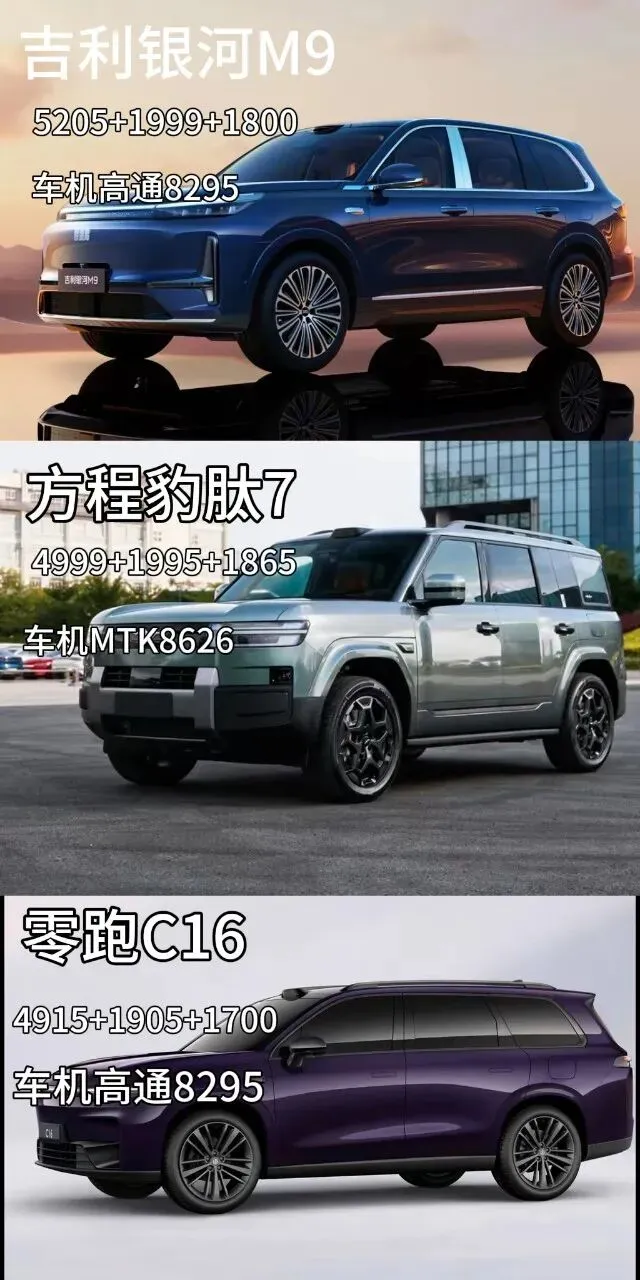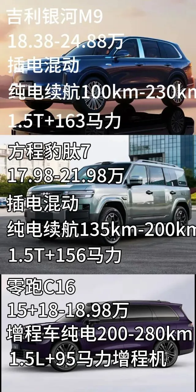 零跑C16 方程豹肽7 吉利银河M9