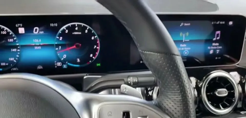 GLB这套内饰走的是另一种路线——中控台设计简洁,液晶显示屏显示车辆信息,整体科技感很强。老张只做素材内的判断:画面里呈现的,是标准的奔驰内饰氛围。