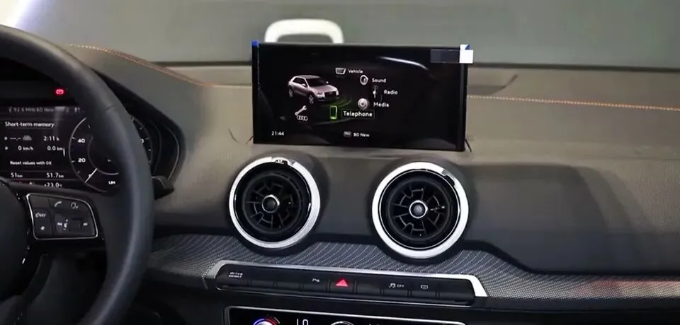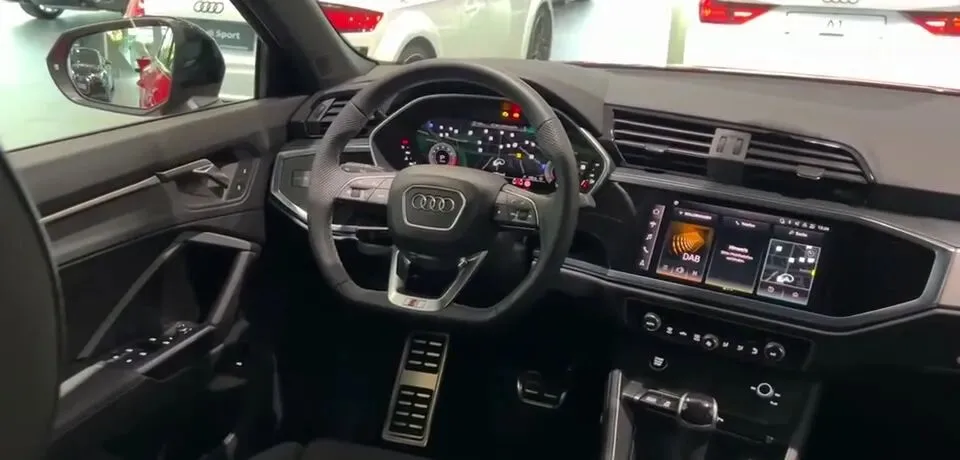 展示奥迪Q3 SUV的内饰设计,包括中控台等。