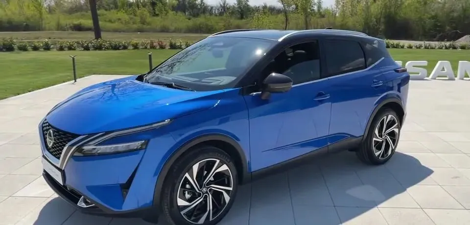 展示日产逍客SUV,蓝色车身,外观设计时尚。