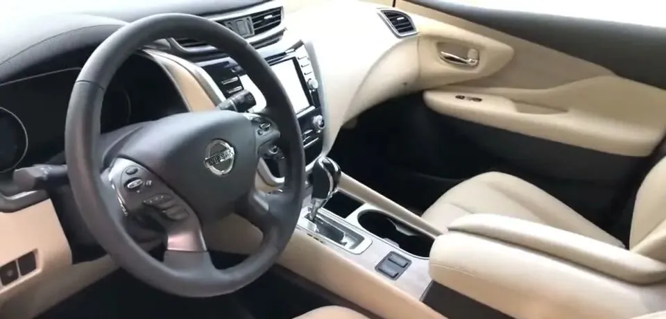 展示日产楼兰Murano SUV的内饰,包括座椅、方向盘、中控台和仪表盘。
