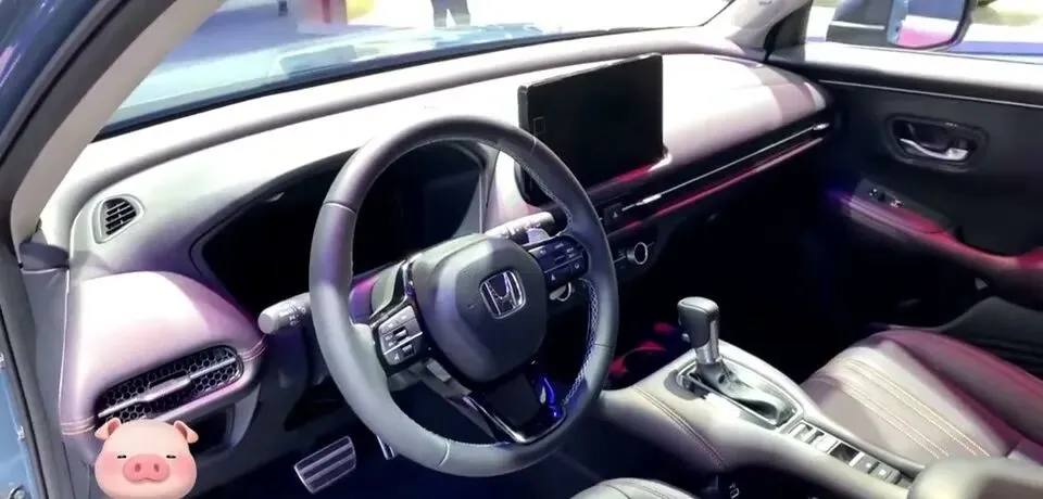 展示本田ZRV汽车的内部驾驶舱,包括方向盘、中控屏幕和仪表盘。