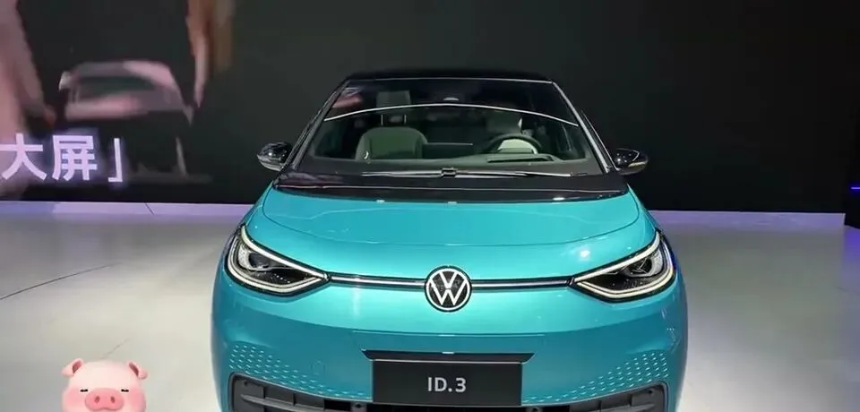 蓝色ID.3新能源汽车正面展示。