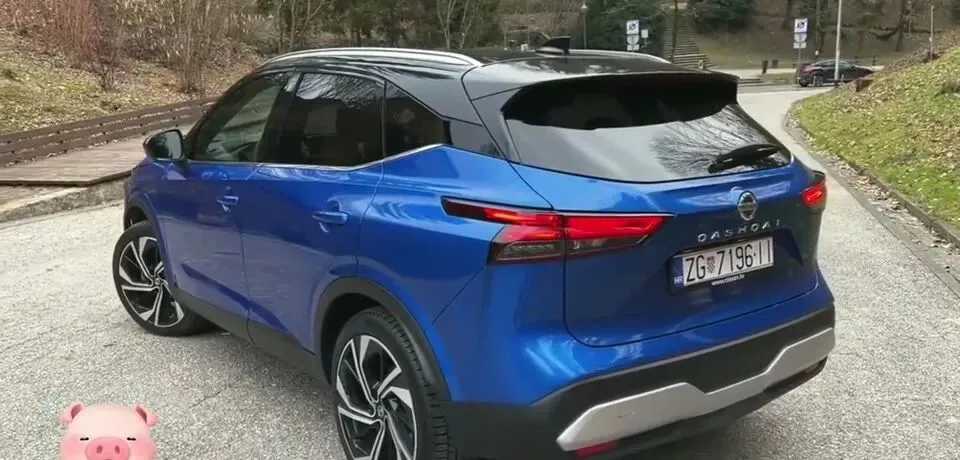 “展示日产逍客汽车的侧面和尾部设计,车身线条流畅,尾灯造型独特,整体风格协调。”