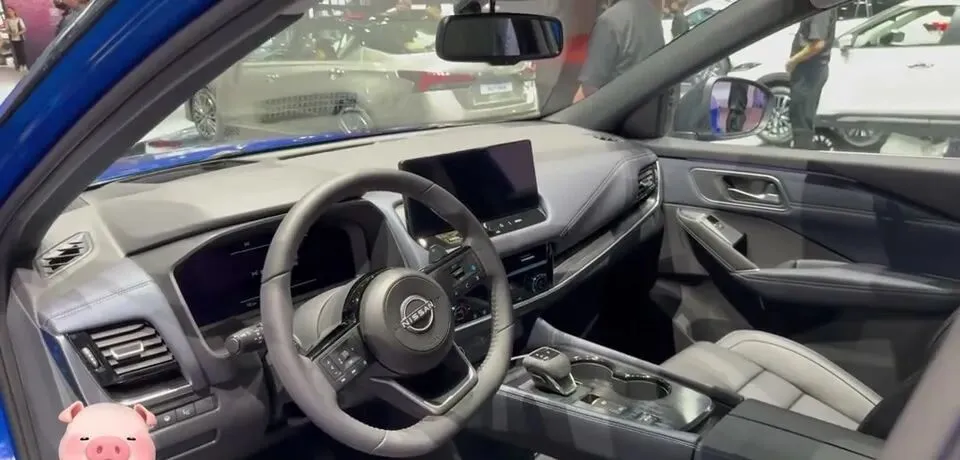逍客这边,“展示日产逍客汽车的内饰设计,中控台布局简洁,配备大尺寸中控屏幕,提升科技感。”