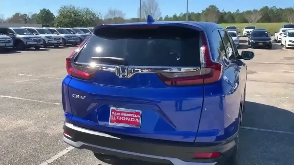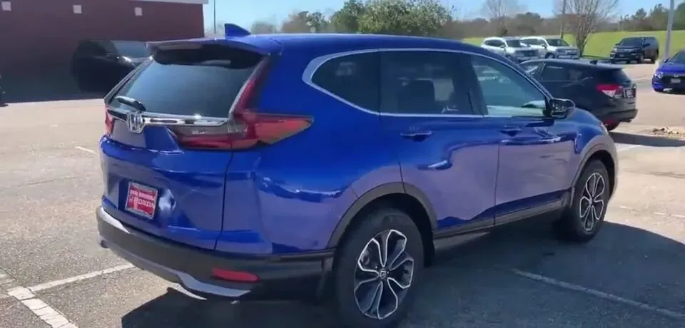 本田CRV,外观展示,蓝色车身,停在停车场内。