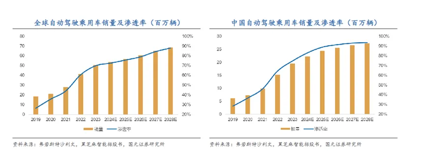 随着L3有条件自动驾驶准入政策落地,智能化变革进入快车道。自动驾驶渗透率有望快速攀升,带动全产业链协同发展。