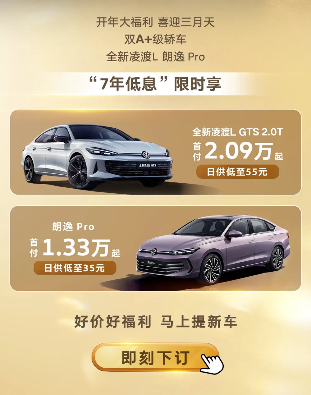 欢迎品鉴 | 上汽大众双A+级轿车三月限时购,全新凌渡L与朗逸 Pro享7年低息福利