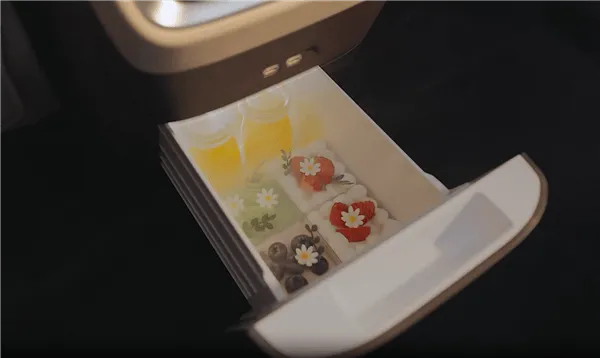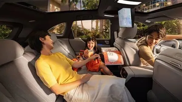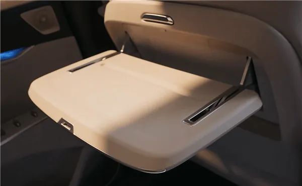 不止如此,该车二排配备多功能桌板,承托稳固且配备专属笔槽,搭配南德TUV护眼智慧顶灯,多功能椅背拓展接口可灵活为设备供电,满足娱乐与轻办公需求,同时还设有银离子保鲜冷暖箱,支持2–50℃宽域调温。