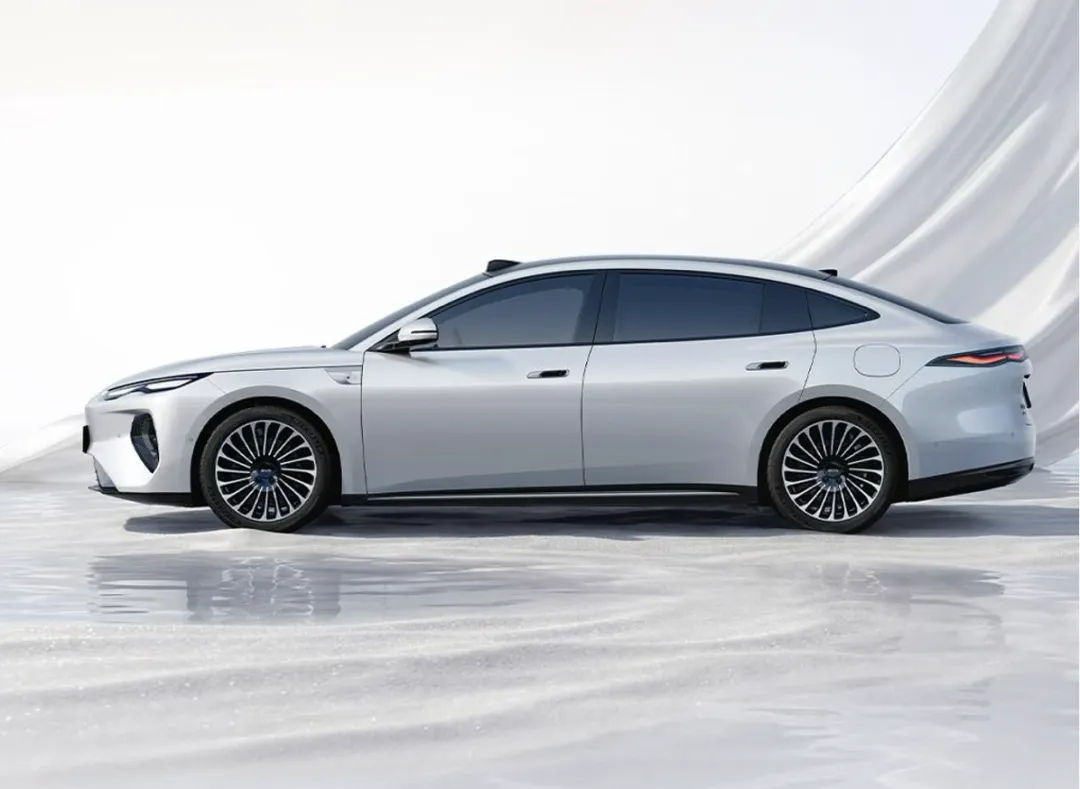 来到车身侧面,整体造型十分流畅,且动感,配备半隐藏式门把手,车顶线条呈现出溜背的造型趋势。