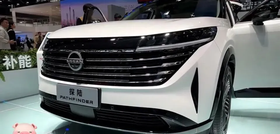 “展示日产探陆的外观,白色车身,采用日产家族式设计风格。”