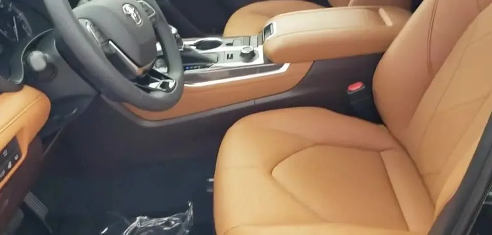“展示丰田汉兰达的内饰,棕色座椅。”