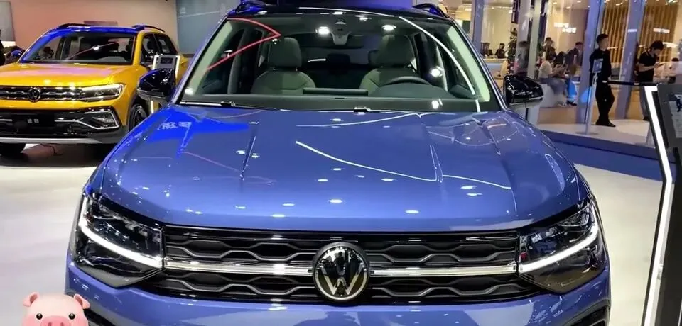 大众途岳SUV展示,外观设计时尚大气,蓝色车身引人注目
