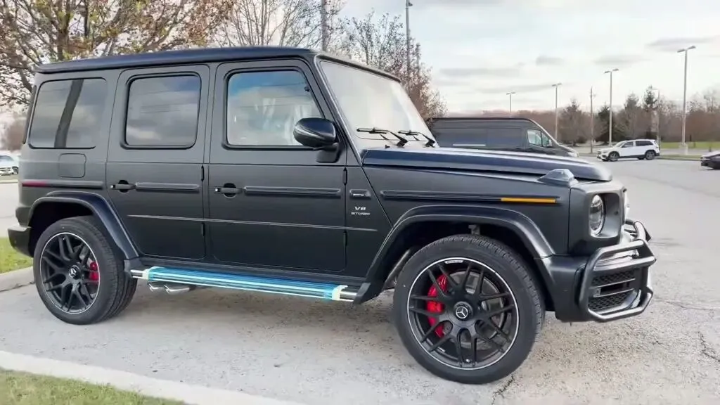 奔驰G级SUV,黑色车身,红色刹车卡钳。