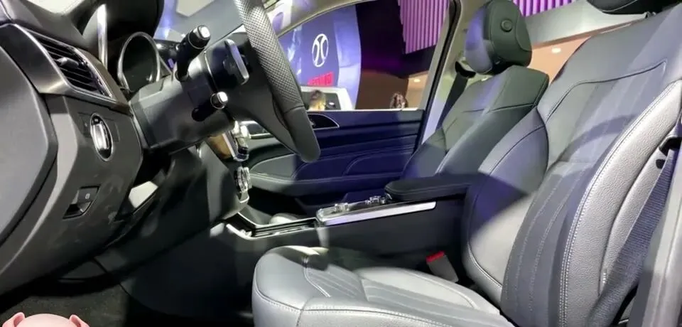 北京BJ90驾驶舱,灰色真皮座椅,桃木内饰。