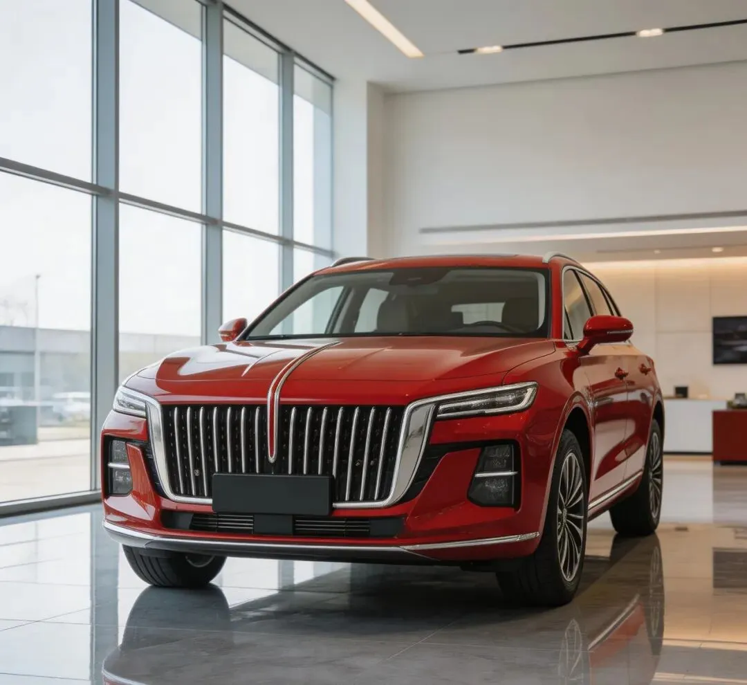 红旗SUV的前脸设计极具视觉冲击力。直瀑式格栅几乎占据了整个车头,镀铬饰条在阳光下熠熠生辉。引擎盖上那道贯通式红旗标识,启动瞬间亮起红色流光这一刻,你会不自觉地挺直腰板。