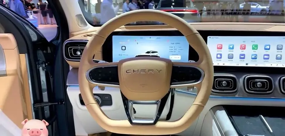 奇瑞瑞虎9内饰展示,方向盘设计豪华,中控台科技感强。