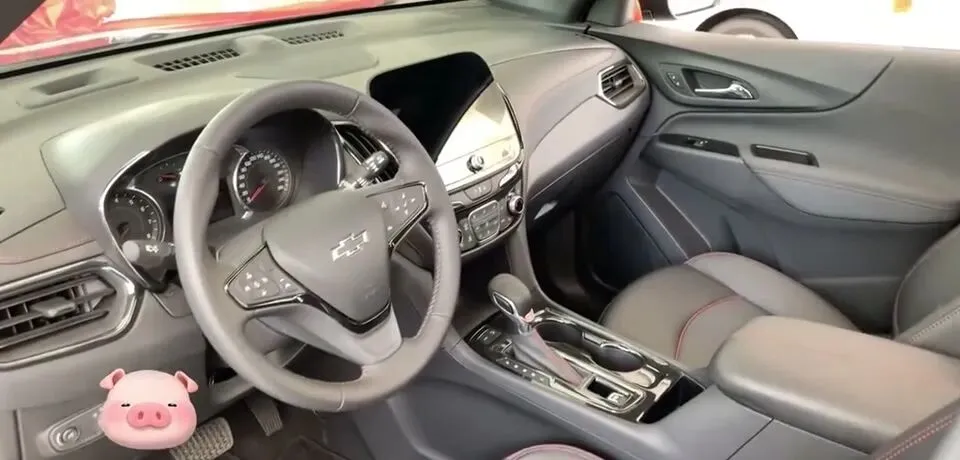 展示雪佛兰探界者的车内空间,方向盘和中控台。