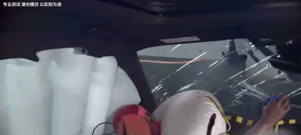 测试是在主驾一侧,以时速64公里撞击障碍物。这个速度不算夸张,说句良心话,高速上稍微一个失误都可能到这个区间。
