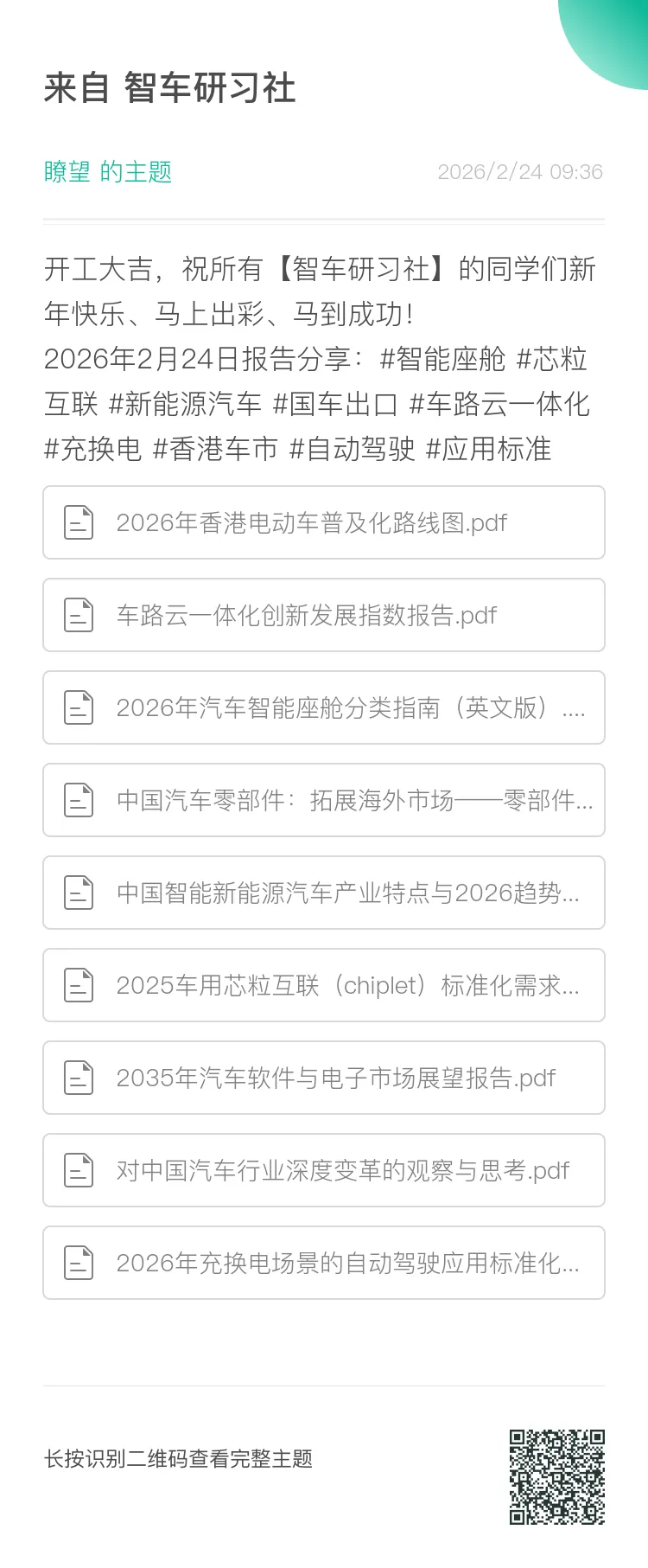 欢迎加入《智车研习社》知识星球,共享1000+海量报告资源👇