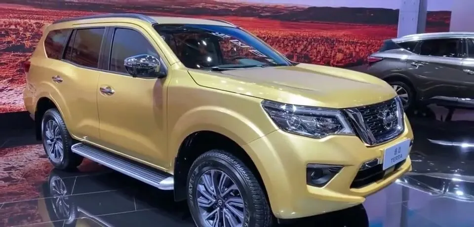 日产途达则完全是另一种气质,前脸设计霸气,红色、金色车身都给足了存在感。
