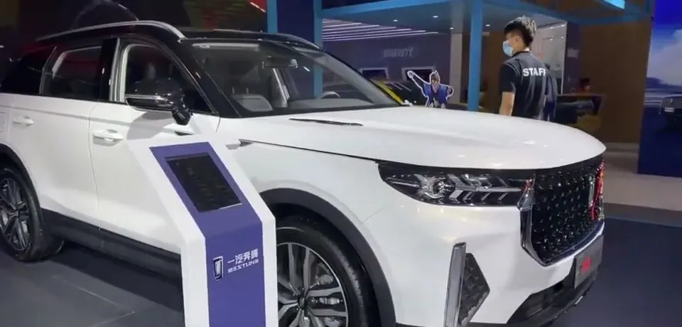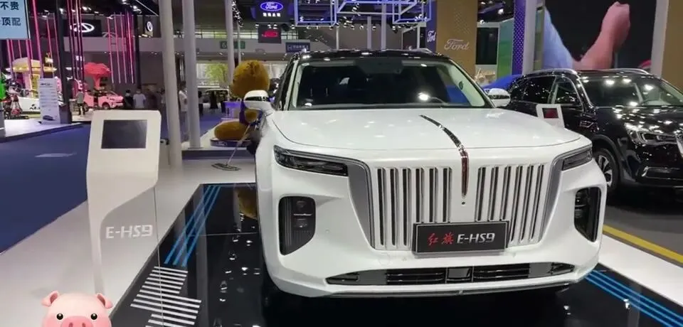 奔腾E-HS9白色车身,直瀑式格栅设计