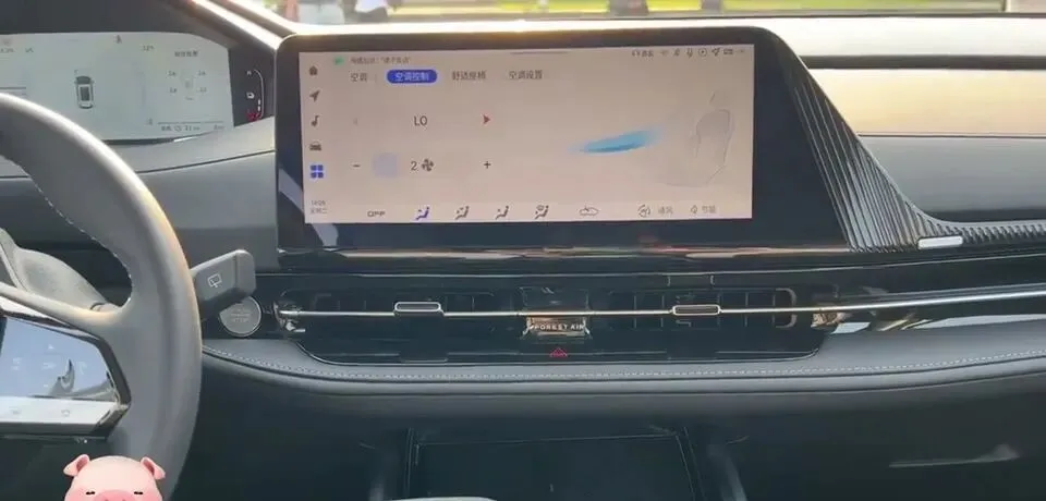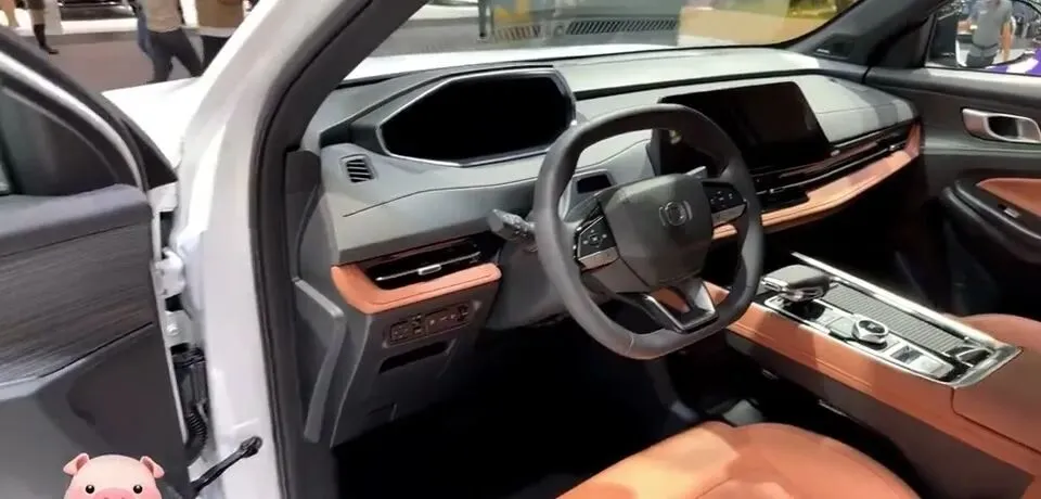 “展示车辆内饰,包括中控屏幕、方向盘和仪表盘等。”