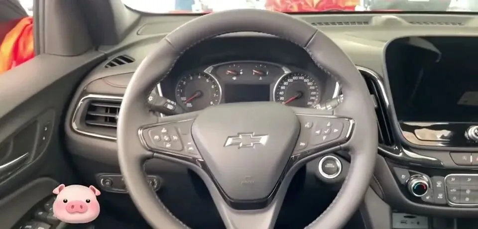 展示雪佛兰探界者的内饰设计,包括方向盘和中控台。