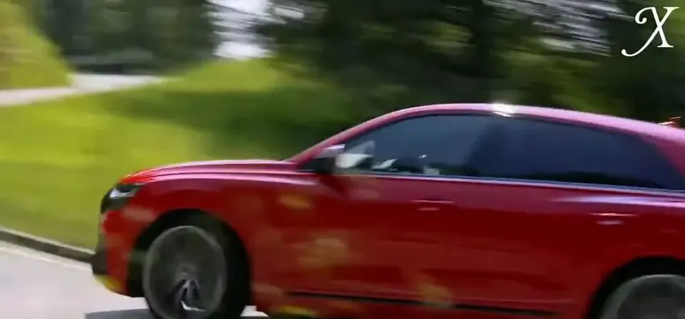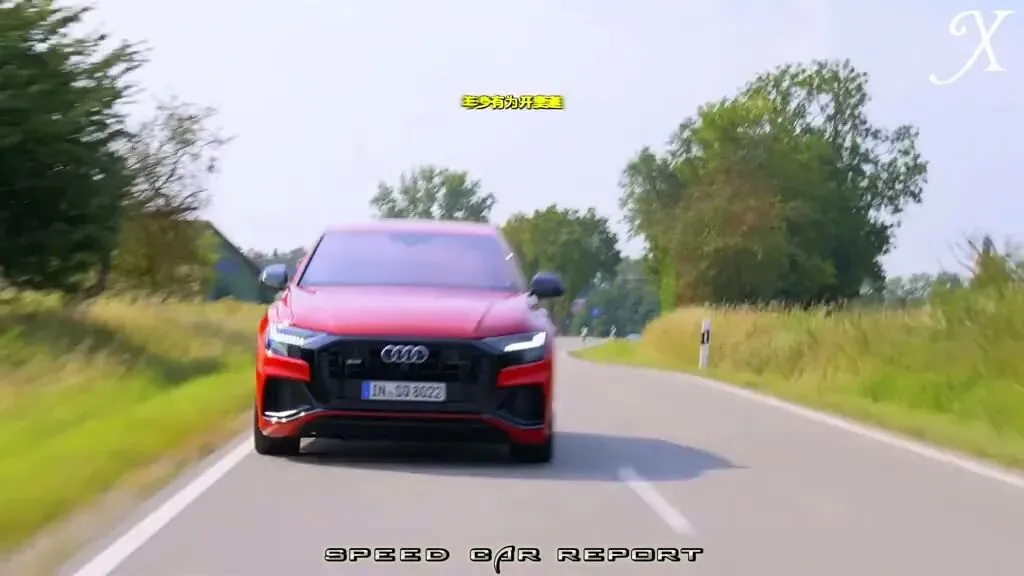 红色奥迪SQ8在道路上行驶。