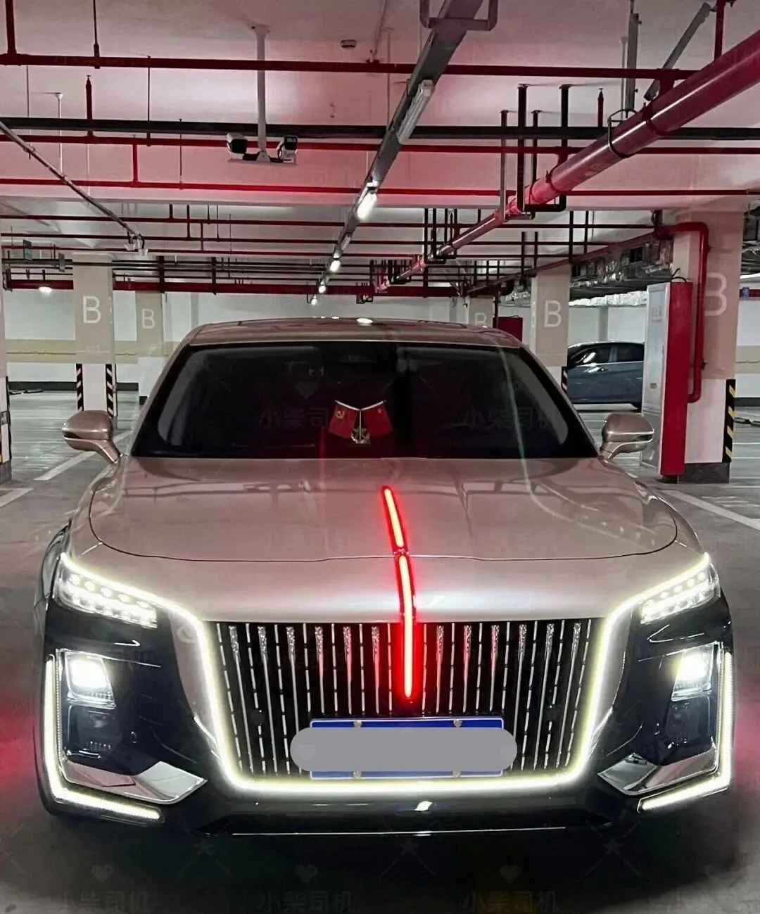 其次谈到气场与面子这一方面,红旗在相关方面未曾处于劣势。H5的外观采用家族风格的直瀑式大格栅,还有一个可发光的红色旗标,夜晚行驶出去时,其辨识度大幅提升。