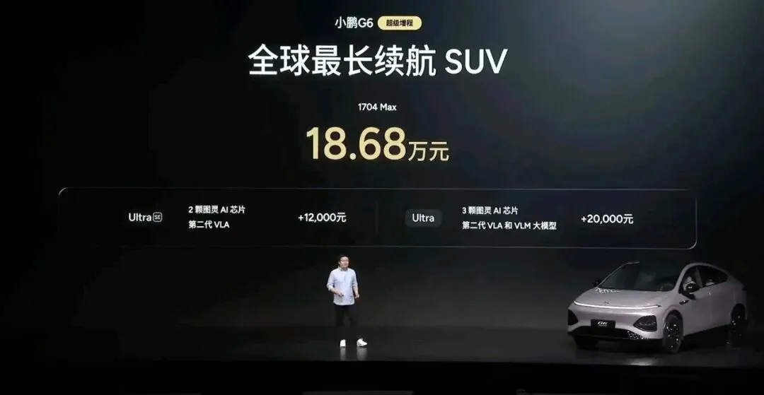 3月6日,小鹏在广州正式发布G6超级增程版,以18.68万元的起售价,将全球最长续航SUV的桂冠收入囊中,这款专为年轻家庭打造的车型,凭借续航、补能、智能、操控、安全等全维度的硬核表现,重新定义了20万级新能源SUV的标杆。- 加1.2万元可升级为双图灵芯片的Ultra SE版