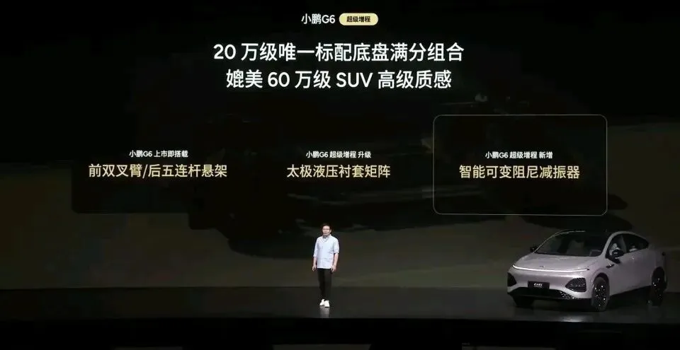 不同算力配置满足用户多样化的智能需求,真正实现科技普惠。作为本次升级的核心亮点,小鹏G6超级增程版搭载55.8度电池+60升大油箱的组合,交出了CLTC综合续航1704km、纯电续航430km的亮眼成绩。日常城市通勤可完全当作纯电车使用,每公里用车成本不到4分钱,百公里电耗仅13.9kWh;长途出行则无需顾虑续航,彻底告别服务区充电排队的烦恼,完美兼顾了电车的经济性和油车的长途便利性。在补能速度上,新车更是做到了20万级独一份——全系标配800V高压平台+5C高压快充,无需额外加价,10%电量充至80%仅需12分钟,补能效率拉满。针对增程车型的噪音痛点,小鹏还配备了ENC+RNC双源主动降噪系统,即便增程器介入,座舱内依旧静谧,家人乘车也能安心休息。智能驾驶向来是小鹏的拿手好戏,这次G6超级增程版更是将高阶智驾下放到20万内市场。新车搭载第二代VLA视觉语言大模型,Ultra/Ultra SE版将于4月全量推送该系统,入门Max版也会在今年下半年收到蒸馏优化版本;车端还部署了10B级参数的VLM大模型,让语音交互、视觉感知的响应更迅速,复杂指令也能精准识别。硬件上,不同版本搭载1-3颗小鹏自研图灵AI芯片,顶配版两颗负责智驾数据处理、一颗专属智能座舱,最高2250 TOPS的有效算力,大幅提升了数据处理上限,为高阶智驾提供了坚实的硬件支撑。新车全系标配前双叉臂+后五连杆独立悬架,还加入了CDC智能可变阻尼减振器和太极液压衬套矩阵,滤震表现和高速过弯的车身支撑性全面优化,驾乘质感媲美60万级SUV;更贴心的是,这套底盘系统自带AI自学习能力,能根据路况提前调节阻尼,适配不同出行场景。安全方面,小鹏G6超级增程版延续了纯电版的前后一体式铝压铸车身,主动安全配置更是拉满:AEB主动刹停、AES主动避让的最大触发速度提升至130km/h,还新增了180km/h高速爆胎稳行功能,即便在湿滑路面或弯道发生爆胎,也能快速稳住车身,为行车安全再加一道防护,堪称新手上高速的“定心丸”。从三年前初代G6上市,以800V架构、铝压铸车身和全场景智驾成为先锋产品,到如今超级增程版到来,小鹏G6的产品理念完成了从“极致科技”到“实用全能”的转变。三年时间,这款车收获了超18万全球车主,拿下2025年国内18-20万级纯电中型SUV销量榜首,还完成了29次大版本OTA、287个核心功能更新,持续用迭代满足用户需求。不仅在国内市场表现亮眼,小鹏G6还是品牌出海的主力车型,目前已进入全球60多个国家和地区,占据小鹏欧洲销量近七成,在挪威、丹麦等市场稳居中国新创品牌市占率前列。值得一提的是,新车海内外版本的车身强度、防撞梁等核心安全硬件完全一致,坚决破除行业“内外双标”的减料陋习,以同等品质面对全球用户。当下的新能源市场早已进入红海竞争,单一的技术优势已难以站稳脚跟,消费者既想要智驾带来的轻松体验,也需要长途出行的续航底气。小鹏G6超级增程版正是抓住了这一需求,用“做加法”的方式补齐纯电车型的痛点: 保留800V快充、自研芯片、高阶智驾等核心优势,新增增程系统实现超长续航,打造出续航、补能、智能、空间、操控、安全六项全能的产品。从先锋科技到拥抱大众需求,小鹏的产品思路愈发贴近市场。这款18.68万起的全球最长续航SUV,凭借全维度的均衡表现,不仅为年轻家庭提供了更优的出行选择,也让20万级新能源SUV的竞争,进入了全维度比拼的新时代。觉得这款全能SUV够香的话,点赞+关注,后续持续带来更多新车实测和选车攻略!