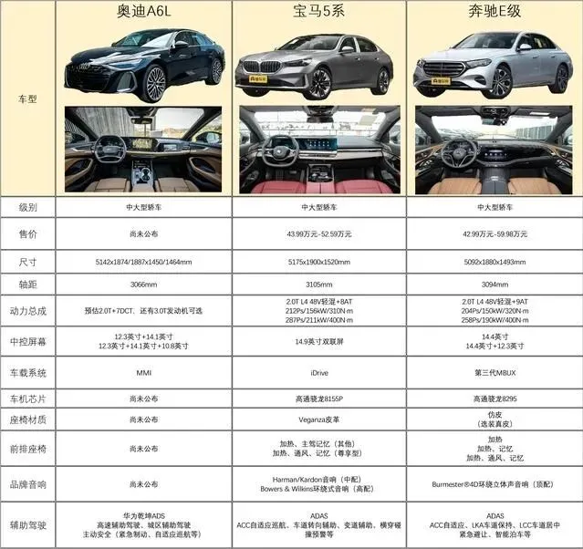 聊聊竞争力。在BBA阵营里,第九代A6L有两大亮点:科技和品牌。华为乾崑ADS辅助驾驶让主动安全、智能驾驶领先同级,而奥迪A6L历来的官车口碑,让它在社会认同感和品牌形象上仍然稳固。宝马5系动力和操控优势明显,奔驰E级的游艇内饰,动力表现不错,特别是变阻尼减震,乘坐舒适性好,但尺寸略小,造型没有C9那么激进。综合来看,如果你追求科技感和豪华感,A6L无疑更有吸引力。
